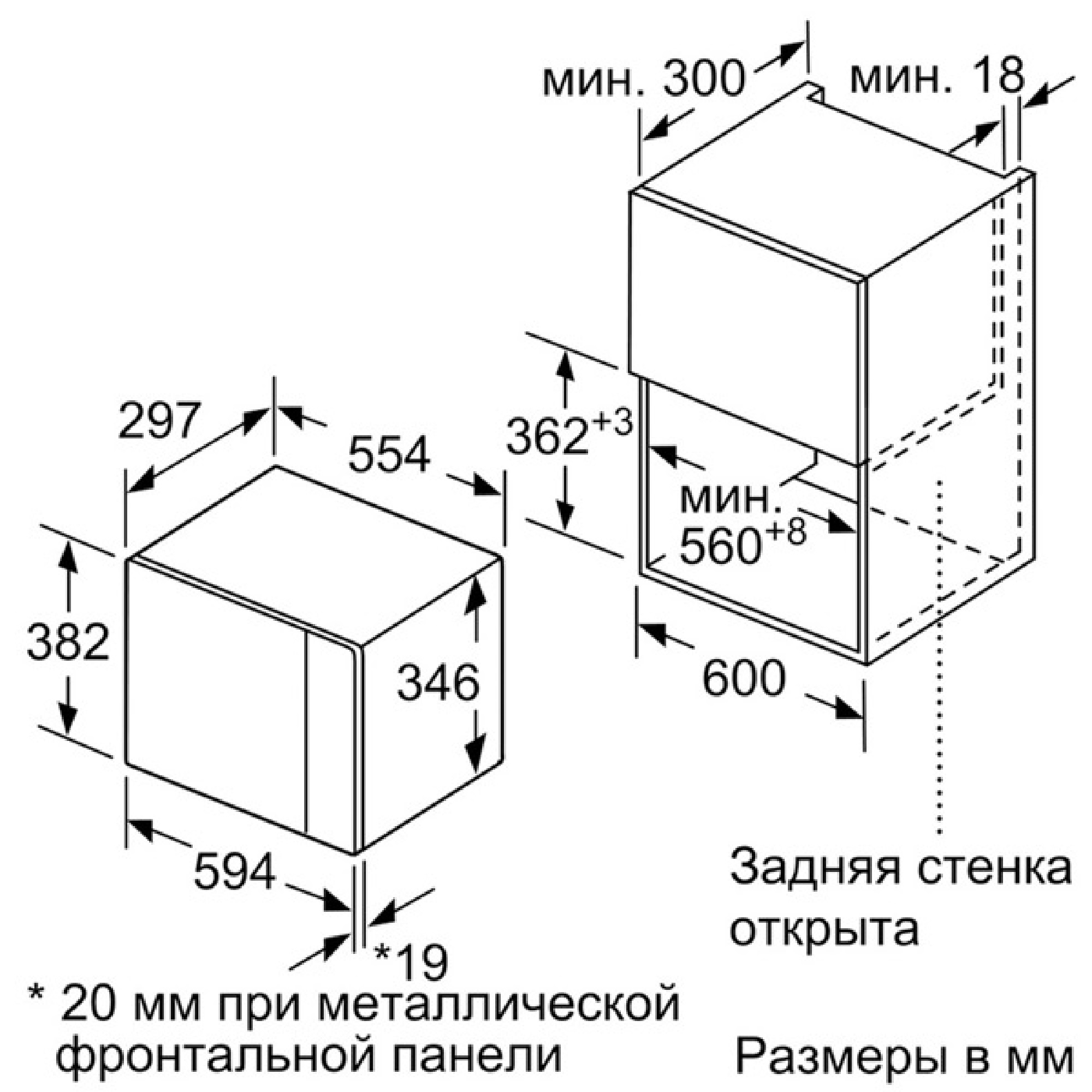 Габариты ниши встраивания (ВШГ) ...36.2-36.5 х 56-56.8 х 30 см